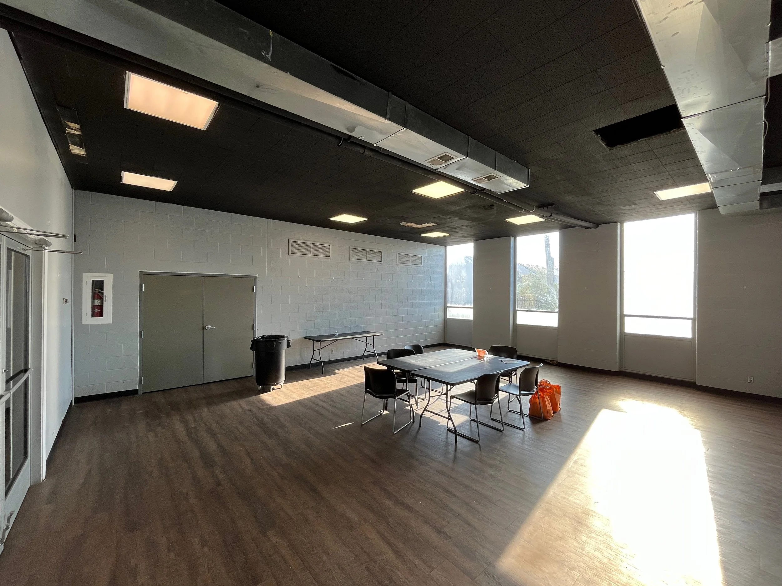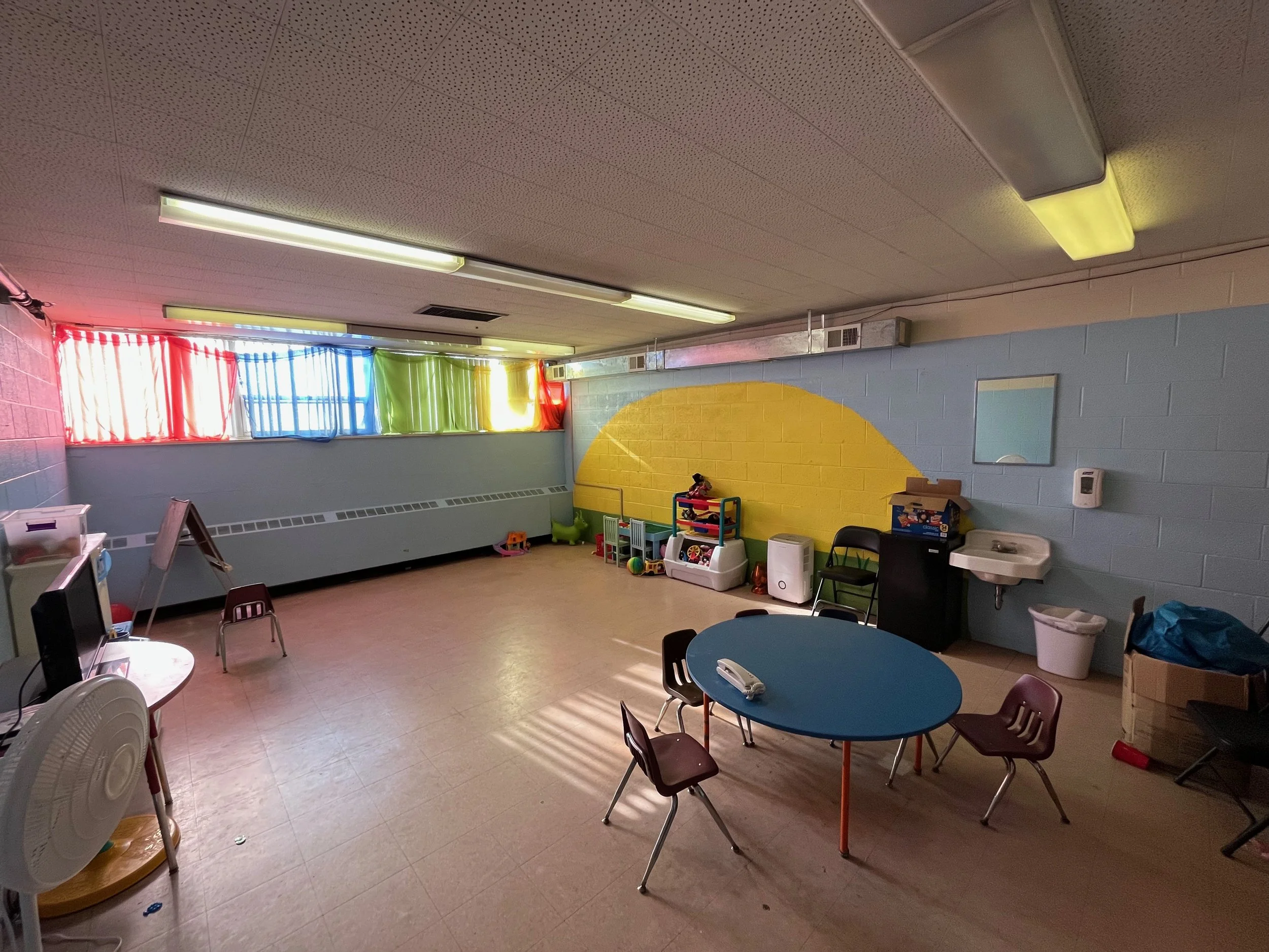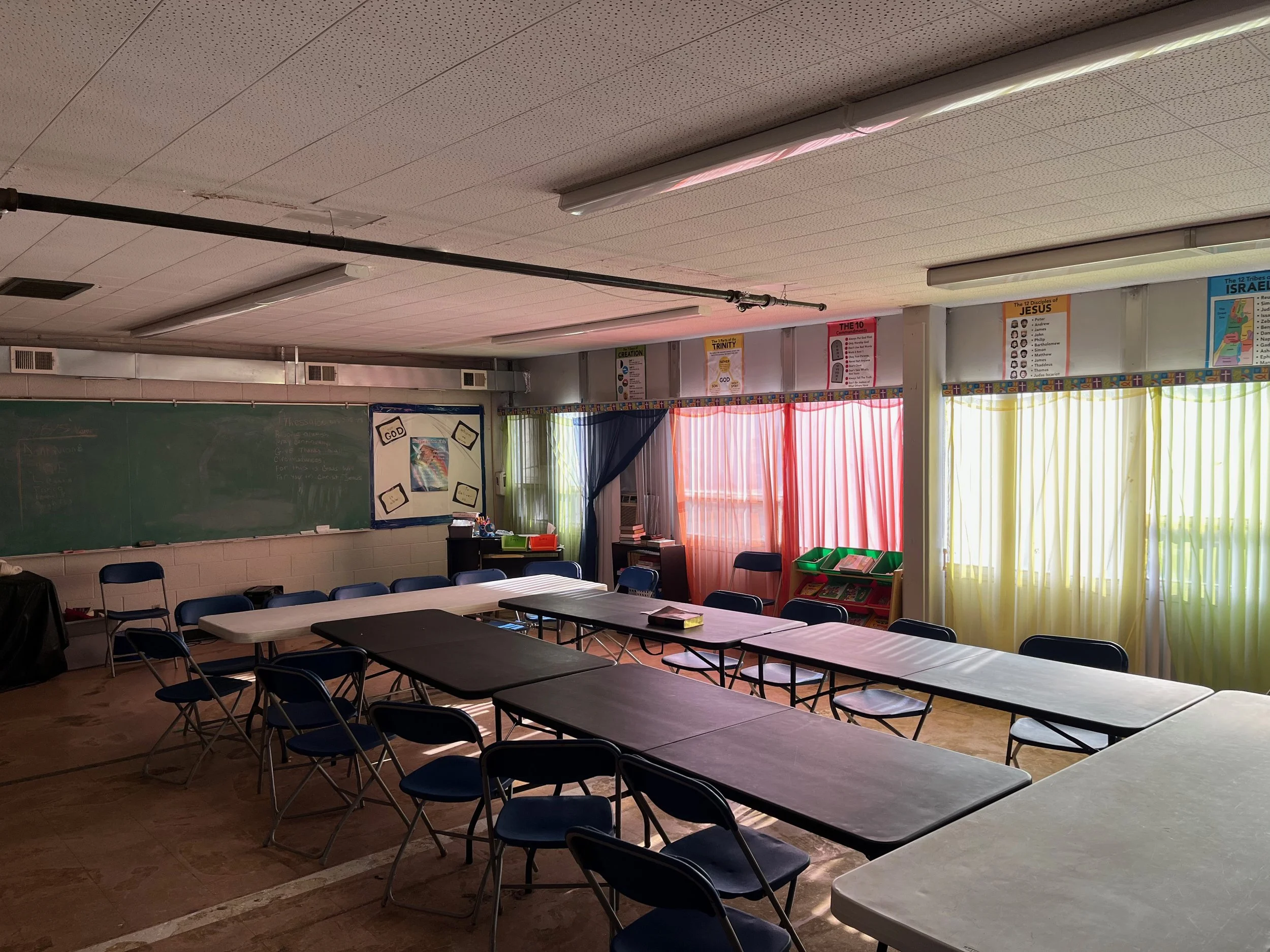 Bordering the gym and the main entrance there are 2 additional rooms (27 by 24 ft) with updated flooring and large windows. While not available as permanent classrooms, they would be a perfect space for activities during the week as the church utilizes the space Friday-Sunday.